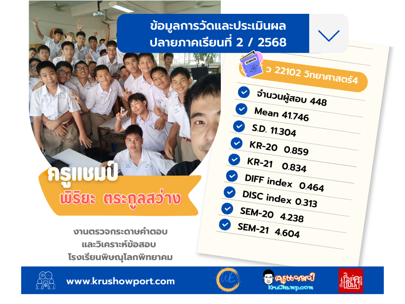 23 พ.ค. 68 แจ้งข้อมูลการเก็บคะแนนวิชา ว 22101
