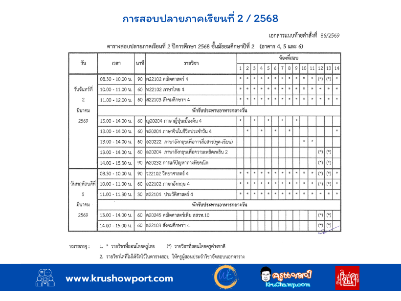 2 , 5 มี.ค. 69 คุมสอบปลายภาค 2 / 2568