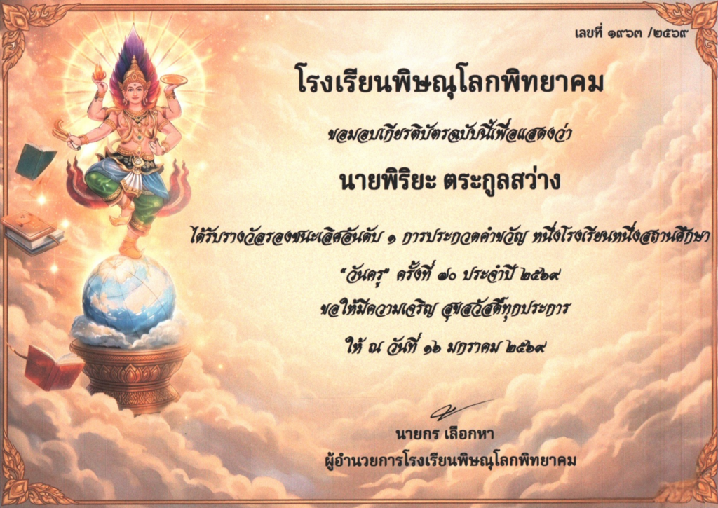 ภาคเรียนที่ 1 ปีการศึกษา 2568 พิษณุโลกพิทยาคม